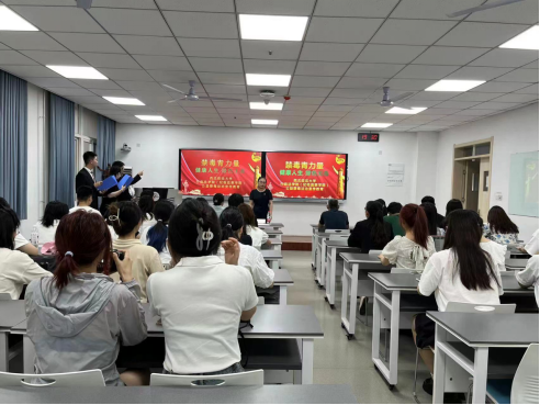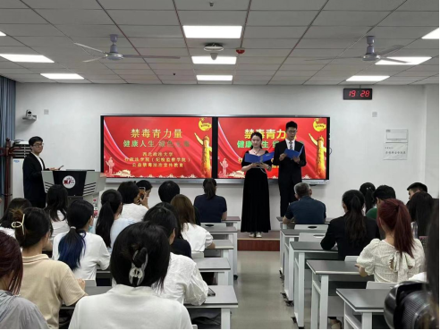 为深入落实学习贯彻习近平新时代中国特色社会主义思想主题教育,扎实开展新时代高校毒品预防教育工作,6月13日下午,成人抖音 在5号教学楼206教室开展公益禁毒普法宣传教育活动。校团委副书记秦立出席活动,成人抖音 辅导员周磊磊、王昕和学生代表共计40余人参加活动,本次活动由成人抖音 党委副书记李芳主持。