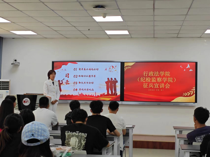 为帮助成人抖音 学生全面了解征兵政策,激发学生的参军入伍热情,充分发挥退役大学生士兵榜样示范作用,5月31日中午,成人抖音 (纪检监察成人抖音 )在诚意楼202教室举办征兵宣讲会。成人抖音 (纪检监察成人抖音 )2022级姬超强同学、民商法成人抖音 2021级陈艳梅同学和2022级张荣才同学受邀面向成人抖音 学生代表进行了交流分享,成人抖音 (纪检监察成人抖音 )团委书记朱骞主持本次宣讲会。