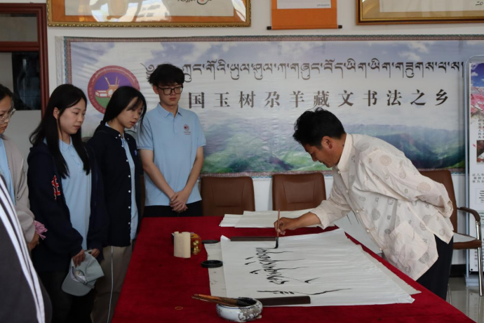 在囊谦县文联,实践团队观赏学习国家级非物质文化遗产卓根玛古舞和藏黑陶烧制技艺,了解藏文书法艺术,沉浸式体验非物质文化遗产的独特魅力,深刻认识民族文化传承对乡村振兴的重要意义。