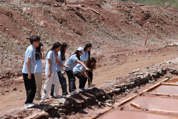 为直观感受当地乡村振兴产业发展状况,实践团队来到囊谦县八大盐场之一的白扎盐场,亲身体验古法采盐工艺,了解囊谦县发挥本土红盐和卤水资源优势,打造红盐品牌的产业发展成效。在与乡村振兴局工作人员的座谈中,团队成员深入了解了囊谦县乡村振兴特色举措,并就实际工作中存在的问题进行交流探讨。