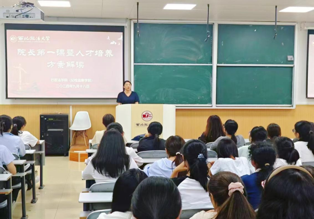 2024年9月18日晚,成人抖音 (纪检监察成人抖音 )院长第一课暨《成人抖音 法学本科人才培养方案》解读在天平楼AJ13顺利举办。讲座由成人抖音 院长姬亚平教授、教务办崔小宜老师主讲,成人抖音 党委副书记李芳主持,2024级新生辅导员徐泽蓉及2024级全体新生参与。