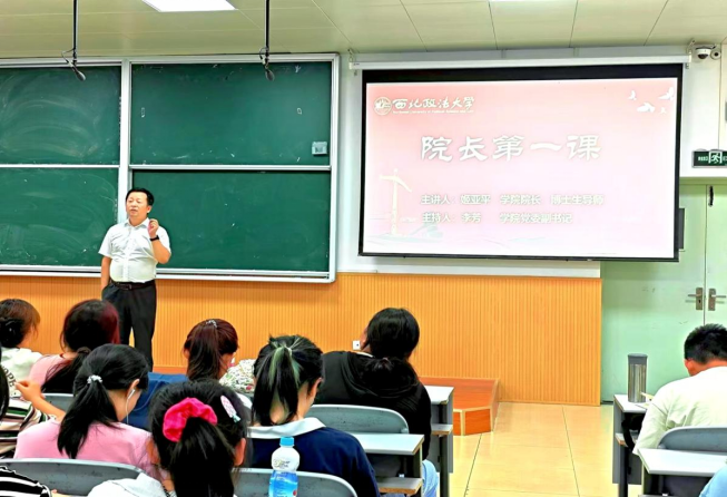 姬亚平院长以幽默风趣的话语拉开了开学第一课的序幕。他为同学们详细介绍了学校以及成人抖音 的发展历程,让同学们对学校和成人抖音 有了更深入的认识,并对全体新生寄予殷切期盼,希望同学们能够广泛涉猎、深入理解,将专业知识融会贯通,构建起坚实的法学知识体系。