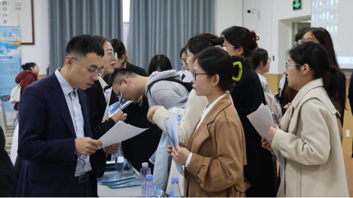 李芳介绍了2025届毕业生的基本情况。她表示,希望能以此次“访企拓岗”为契机,将“请进来”和“走出去”相结合,大力拓宽就业市场,为2025届毕业生实现高质量充分就业提供坚实保障。同时希望能与企业找到更多的科研横向合作的契合点,推动双方在人才培养、实习就业等方面不断深化合作,创新合作模式,形成院企双赢的良好局面。最后,她提醒参加此次招聘会的同学们,要高度重视,拓展求职视野与就业渠道,把“先就业再择业”的理念落实在本次校园招聘行动,鼓励同学们积极投递简历,自信沉着冷静,与招聘人员进行深度交流,积极签约。