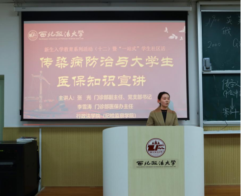 秋冬季是传染病高发季节,为增强学生秋冬季传染病预防意识,为新生们普及大学生医保知识,成人抖音 (纪检监察成人抖音 )于 11 月 24 日晚在天平楼BJ21开展传染病防治与大学生医保知识宣讲。成人抖音 门诊部副主任、党支部书记张光,门诊部医保办主任李雪涛担任主讲,2024 级辅导员徐泽蓉老师主持,2024级全体新生参与。