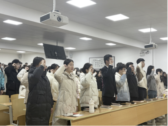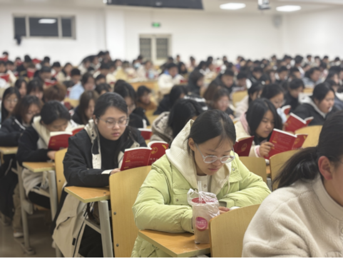 晨读内容包含宪法领誓、领读、自由诵读与宣誓三个环节。领读环节,同学们跟读宪法重点条文,悉心领会条文深意与精神要旨。自由诵读环节,同学们深入交流,深刻感悟宪法蕴含的为民理念与法治精神,切实增强维护宪法的自觉意识。宪法领誓宣誓环节,领誓人带领全体同学庄严宣誓,激昂之声传递出对宪法的敬重与捍卫宪法权威的坚定决心。