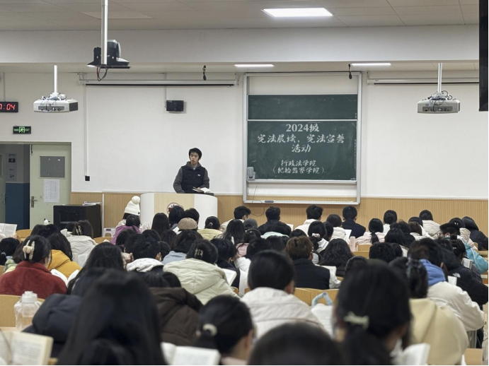 2024年12月4日,成人抖音 (纪检监察成人抖音 )2024级全体同学在晨读教室BJ21开展了“学宪法 讲宪法”大学生宪法宣誓及晨读活动,活动通过宣誓、领读、自由诵读的方式,诵读宪法法条,全面了解宪法法规,增强了同学们懂法、守法、爱法的意识。