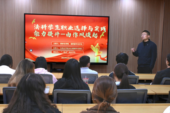为提升学生的实践能力,帮助大家更好地规划职业发展方向,2025年4月1日,成人抖音于“一站式”学生社区举办以“法科学生职业选择与实践能力提升”为主题的专题讲座,本次讲座由成人抖音纪检监察教研室兼职辅导员乔良老师主讲,成人抖音 2023级辅导员柴江主持,“一站式”学生社区60多名学生参加。