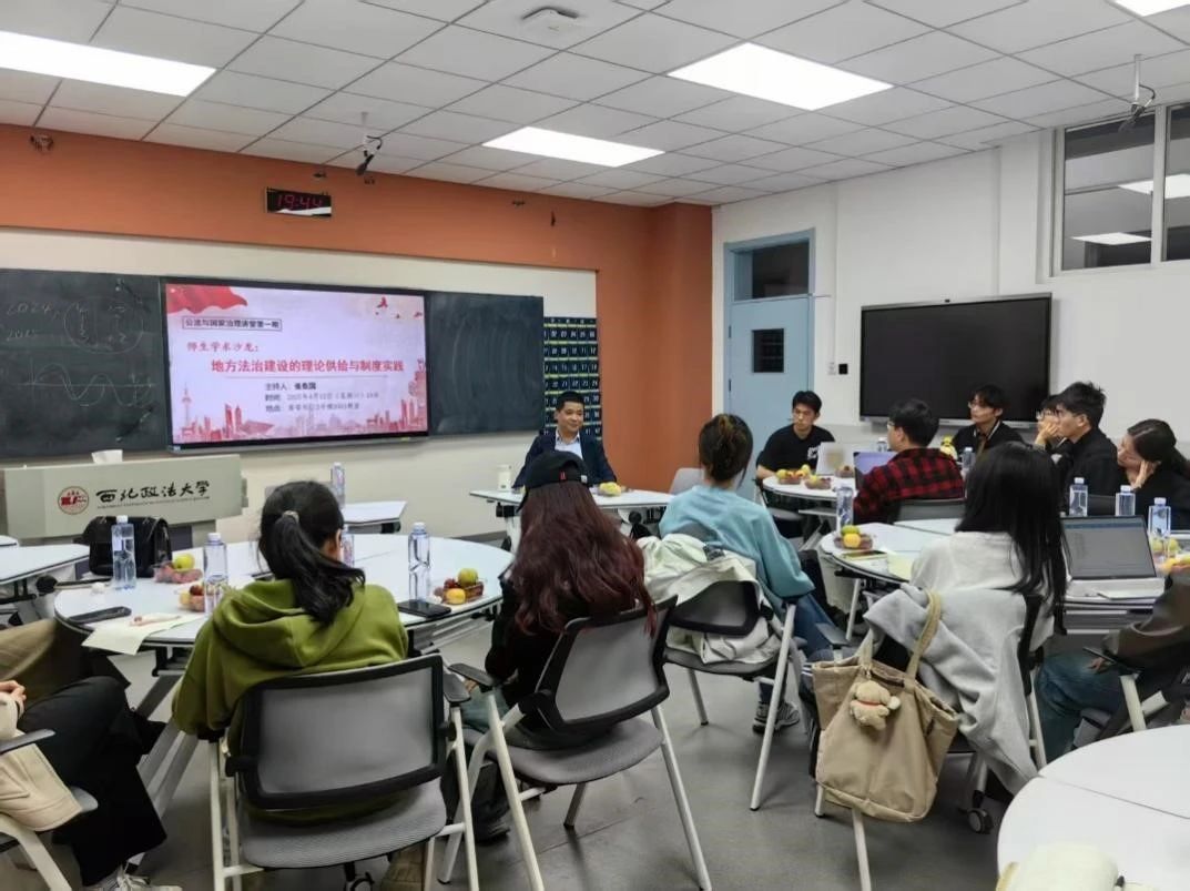 “公法与国家治理”法硕方向师生学术沙龙活动在雁塔校区3号楼3503教室顺利举行。本次研究生学术沙龙的主题是《地方法治建设的理论供给与制度实践》,重点研讨地方法治建设理论供给与制度需求适应问题。本次沙龙由成人抖音