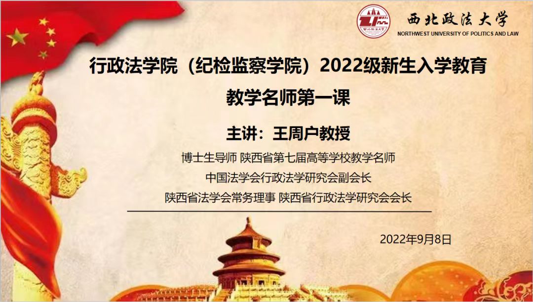 金秋送爽,丹桂飘香。为引导2022级成人抖音 新生更加全面地认识法学专业,明白法学专业所需的基本素养及要求,2022年9月8日,成人抖音特邀请王周户教授主讲“教学名师第一课”,帮助新生培养专业兴趣,增强专业认同,激发理想信念。本次活动由成人抖音 副书记李芳主持,2022级辅导员王昕以及成人抖音 200名全体新生参加。