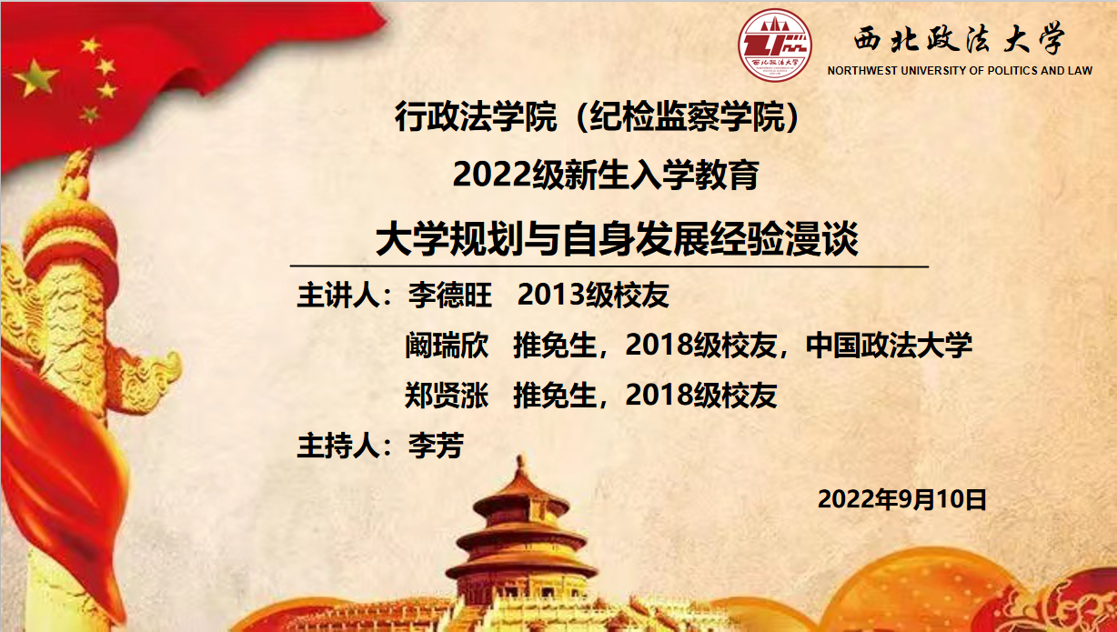 为了激发新生的学习动力和热情,砥砺新生珍惜宝贵的学习时光,引导新生树立正确的学业观,2022年9月10日,成人抖音 (纪检监察成人抖音 )充分发挥优秀校友的榜样引领作用,邀请李德旺、阚瑞欣、郑贤涨三位优秀校友围绕自身的求学经历向大家进行经验分享。本次线上分享会由成人抖音 副书记李芳主持,2022级辅导员王昕及成人抖音 全体新生参加。