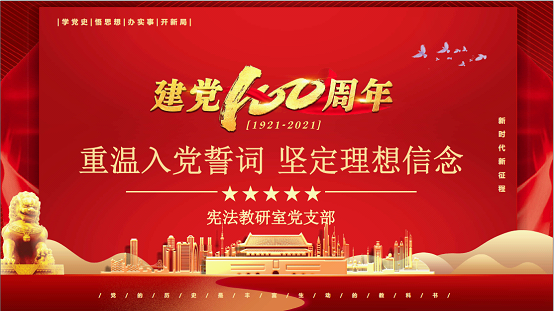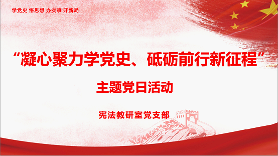 为庆祝中国共产党成立100周年,近日成人抖音 (纪检监察成人抖音 )宪法教研室党支部在成人抖音 党员活动室开展党史学习教育主题党日活动。成人抖音 党委书记呼勇、院长姬亚平、副院长杜国强和宪法教研室党支部党员教师参加了此次活动。