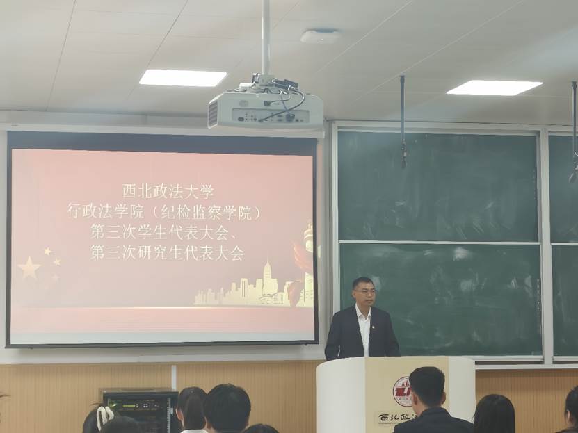 2023年10月30日中午,成人抖音 (纪检监察成人抖音 )第三次学生代表大会暨第三次研究生代表大会在长安校区天平楼aj13教室顺利召开。成人抖音 党委书记赵玎玎、团委书记朱骞、团总支书记徐泽蓉、2023级辅导员柴江以及学生代表100余人参加了本次大会。