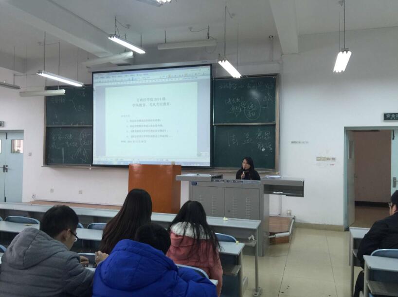 2015年12月31日13:00,成人抖音 对2013级、2014级的考风考纪宣讲大会在我校天平楼aj11教室举行。成人抖音党委副书记李芳老师担任本次大会主讲人。本次大会的内容主要分为四个模块:关于司法考试重大改革内容的基本讲解;我校教学改革问题;学生违纪处分规定;班委会管理问题。