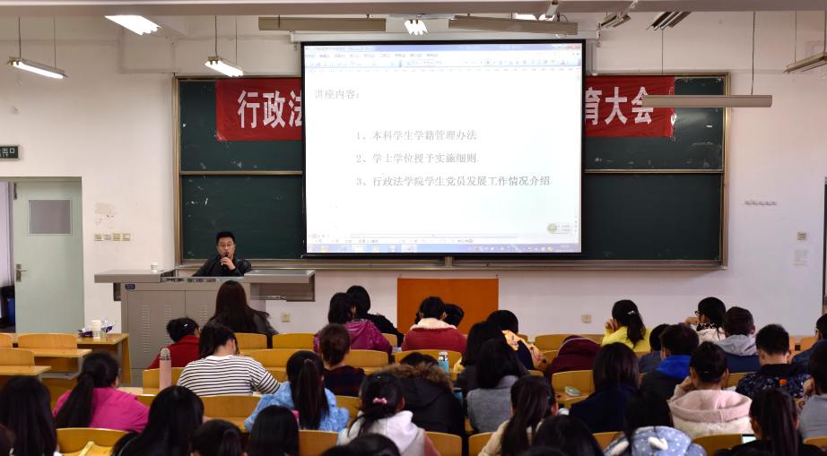 一是本科学生学籍管理办法。首先,戴书记从总则切入,理清概念,并着重说明学分制管理的重要性。学生们也从中了解了选修课与必修课的成绩分别占总成绩的比例。此外,戴书记还列举休学、复学、转专业及毕业、结业、肄业的有关规定,并提醒同学们有了学位证就能得到毕业证,而单单得到毕业证并不意味着可以获得学位证。