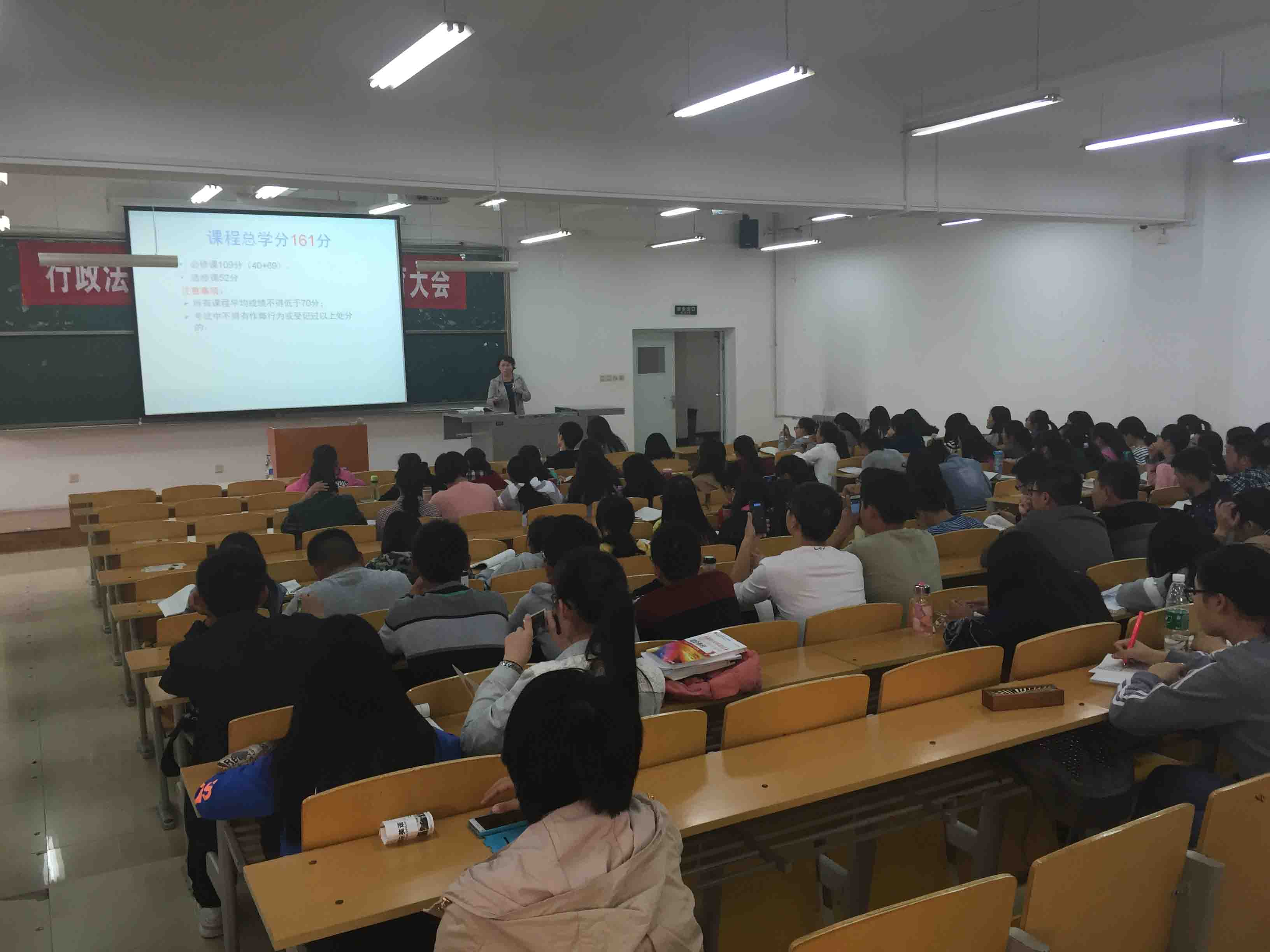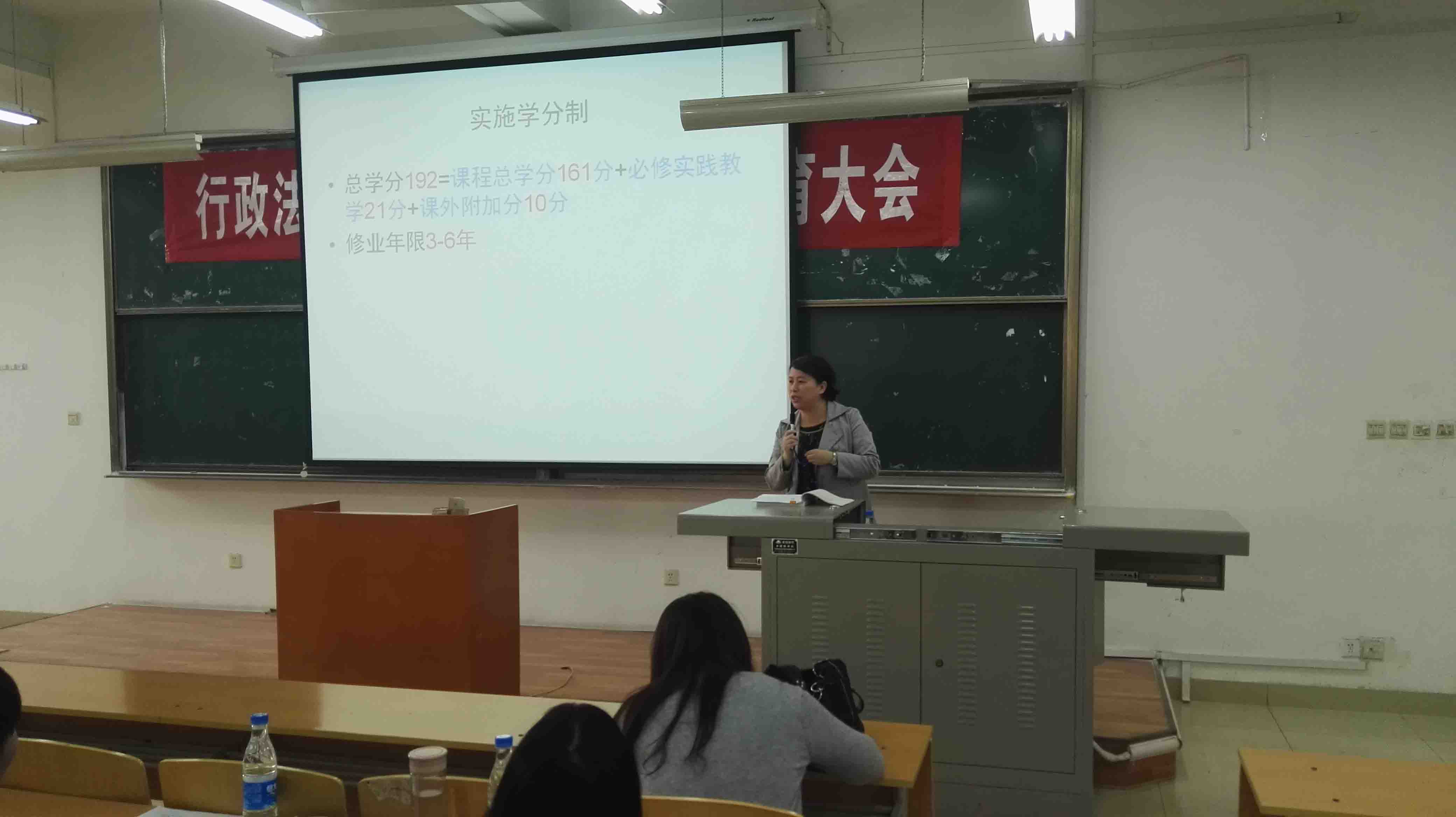 14时30分,新生教育大会第二讲正式开始。本次大会分为两个部分,首先进行的是李瑰华教授为2015级新生们讲述我校的人才培养方案,更是学生们四年课程学习的主线---------学分制制度。李老师耐心地为学生们讲解了各种培养方案,为学生们分析利弊,大大地方便了学生们选择适合自己的方案。接下来,李老师还未学生们介绍了大学中的课程安排,以及选择选修课的规定与技巧,向新生们阐述了学校对于留级以及弥补过错的规定,使学生们更加全面的了解了大学学习生活。