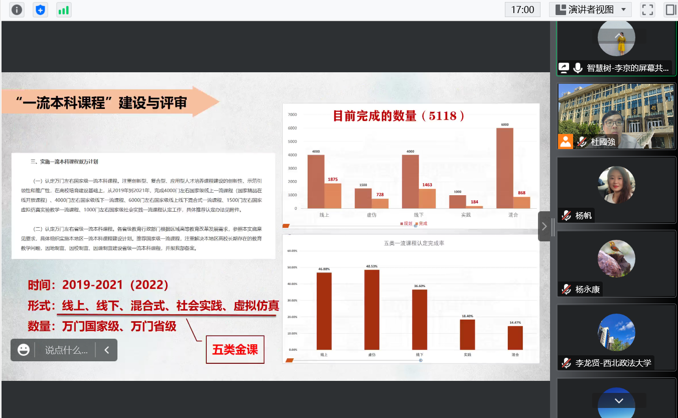 在会议的第一阶段,李京老师介绍了一流课程的评审发展历程、评审标准、建设方法,剖析了一流课程建设中如何体现课程思政的理念与要求,进而达到德、识、能三位一体的育人目标。