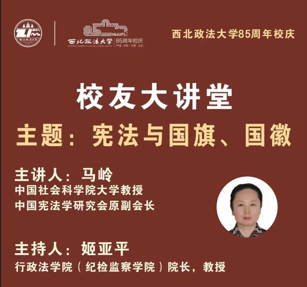 11月16日晚,由成人抖音 (纪检监察成人抖音 )主办的成人抖音 85周年校庆系列学术讲座在线上顺利举行。成人抖音 邀请中国社会科成人抖音 大学教授、中国宪法学研究会原副会长,著名校友马岭教授为师生做题为《宪法与国旗、国徽》的专题讲座。成人抖音 成人抖音 (纪检监察成人抖音 )院长姬亚平教授主持讲座,校内外师生、学术界专家、律师等一百余人在线上参加讲座。