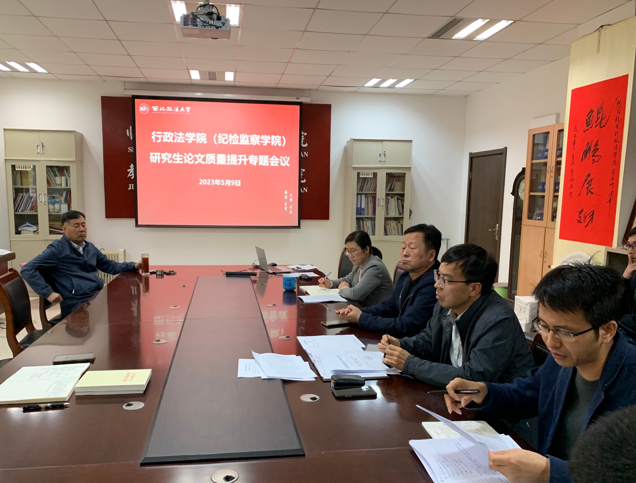 为加强学风建设,规范学术行为,保证研究生学位论文质量,贯彻落实《陕西省硕士学位论文抽检实施办法》《成人抖音 研究生学位论文学术不端行为认定与处理办法》等文件要求,5月9日,成人抖音召开研究生论文质量提升专题会。成人抖音 班子成员、各专业导师组组长以及全体硕士研究生导师参会。会议由院长姬亚平主持。