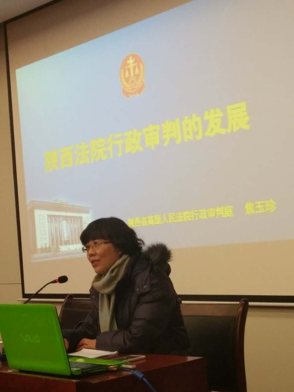 首先,焦庭长结合自己多年来参与行政审判的心得,从机构的设置,案件审理的特点展开,指出近年来受案数量升降交替、波动大,行政审判保护的权利类型不断扩大等特点。其次,介绍了陕西省行政案件审理的基本情况,同时也取得了一些骄人的成绩,在全国首创行政首长出庭应诉制等多个“第一”。再次,焦庭长从工作机制、审判方法的探索与完善方面,介绍了省高院对于完善行政审判所出做的努力。最后,她还谈到当前行政审判所面临的问题,指出行政审判的理念有待转变、案件质效和司法规范水平仍需提升、案多人少现象加剧等八个方面。让在场的老师和同学们对陕西省的行政审判有了相对全面的了解,同时也收获匪浅。