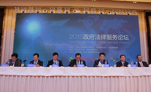 6月6日,由中国法学会律师法学研究会、中国律师杂志社、中世律所联盟联合主办,陕西永嘉信律师事务所承办的“2015政府法律服务论坛”在西安隆重召开。司法部党组副书记、副部长、中国法学会副会长张苏军,陕西省政府党组成员、副省长、政法委副书记、省公安厅党委书记、厅长杜航伟,中华全国律师协会会长、中国法学会律师法学研究会会长王俊峰出席论坛开幕式并致辞。中国法学会研究部主任李仕春,陕西省司法厅党组书记、厅长乌永陶出席论坛,来自全国近30个省市政府部门、专家学者、律师共300多人参加了论坛。