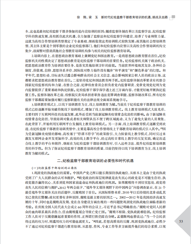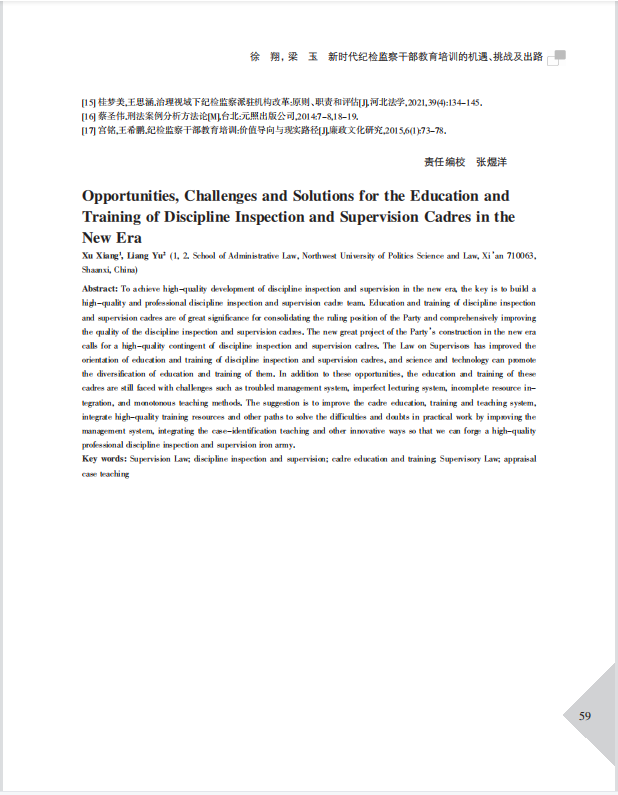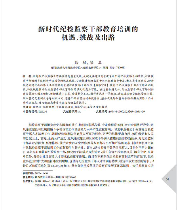 成人抖音徐翔老师与监察法学专业研究生梁玉同学合作的《新时代纪检监察干部教育培训的机遇、挑战及出路》一文,在《廉政文化研究》2023年第3期刊发。