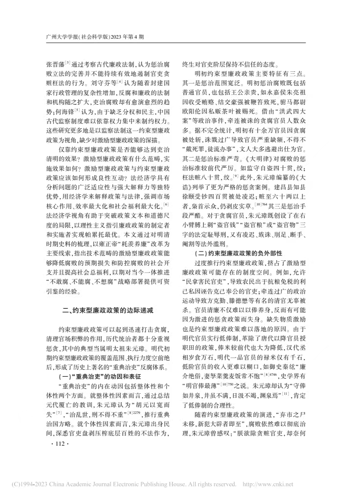 文章关注激励型廉政政策,按照行为导向将廉政政策可以分为约束型与激励型两类,我国古代发达的监察制度使得约束型廉政政策成为腐败治理的主要手段。明初的重典治吏表明,约束型廉政政策可以快速打击腐败,但超出必要限度的严刑峻法会产生反腐边际效应递减,需要导入激励型廉政政策矫正负外部性。以往激励型廉政政策多因陷入道德渊薮而效果不彰,雍正朝的“耗羡养廉”是技术范畴内的激励型廉政政策,通过裁汰陋规、禁止捐俸、限制耗羡用途等手段降低了治理成本,增加了社会总福利。实施激励型廉政政策是反腐败标本兼治、巩固治理成果的重要方向,“耗羡养廉”所展现的熟悉下情、不图虚功、因地制宜以及灵活施策等优势,为当今一体推进“三不腐”提供了可创造性转化的历史经验。