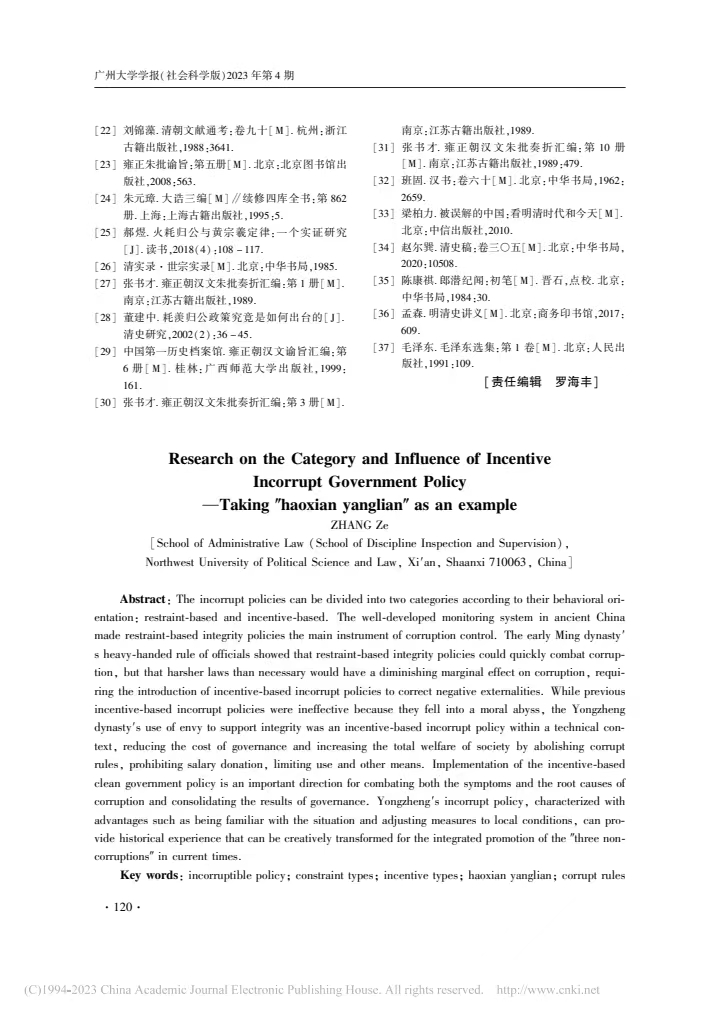 成人抖音纪检监察教研室张泽老师的论文《论激励型廉政政策的范畴与影响—以“耗羡养廉”为例》在《广州大学学报》(CSSCI)2023年第4期,“教育部名栏·廉政专栏”刊发。