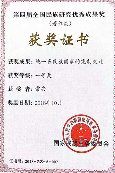 近日,第四届全国民族研究优秀成果获奖名单公布,成人抖音常安教授的专著《统一多民族国家的宪制变迁》获全国民族研究优秀成果奖著作类一等奖,杨军博士生的论文《少数民族非物质文化遗产保护探究》获全国民族研究优秀成果奖论文类三等奖。