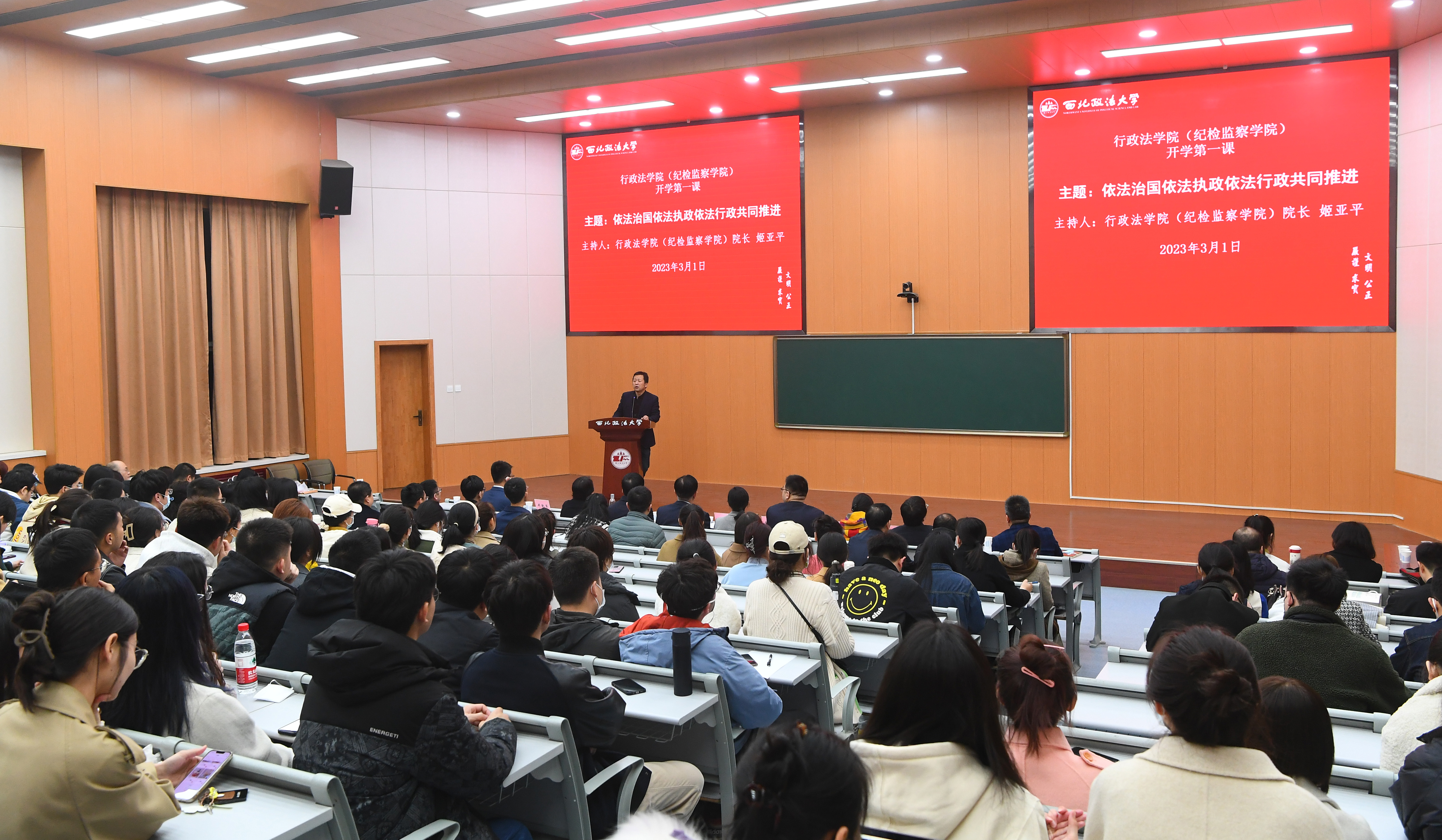 )以“依法治国、依法执政、依法行政共同推进”为题,在雁塔校区人权研究中心联合教室举办“开学第一课”研讨交流活动。校党委副书记、校长范九利,校党委副书记、纪委书记、监察专员肖道远,教务处处长李大勇,科研处处长李瑰华,成人抖音