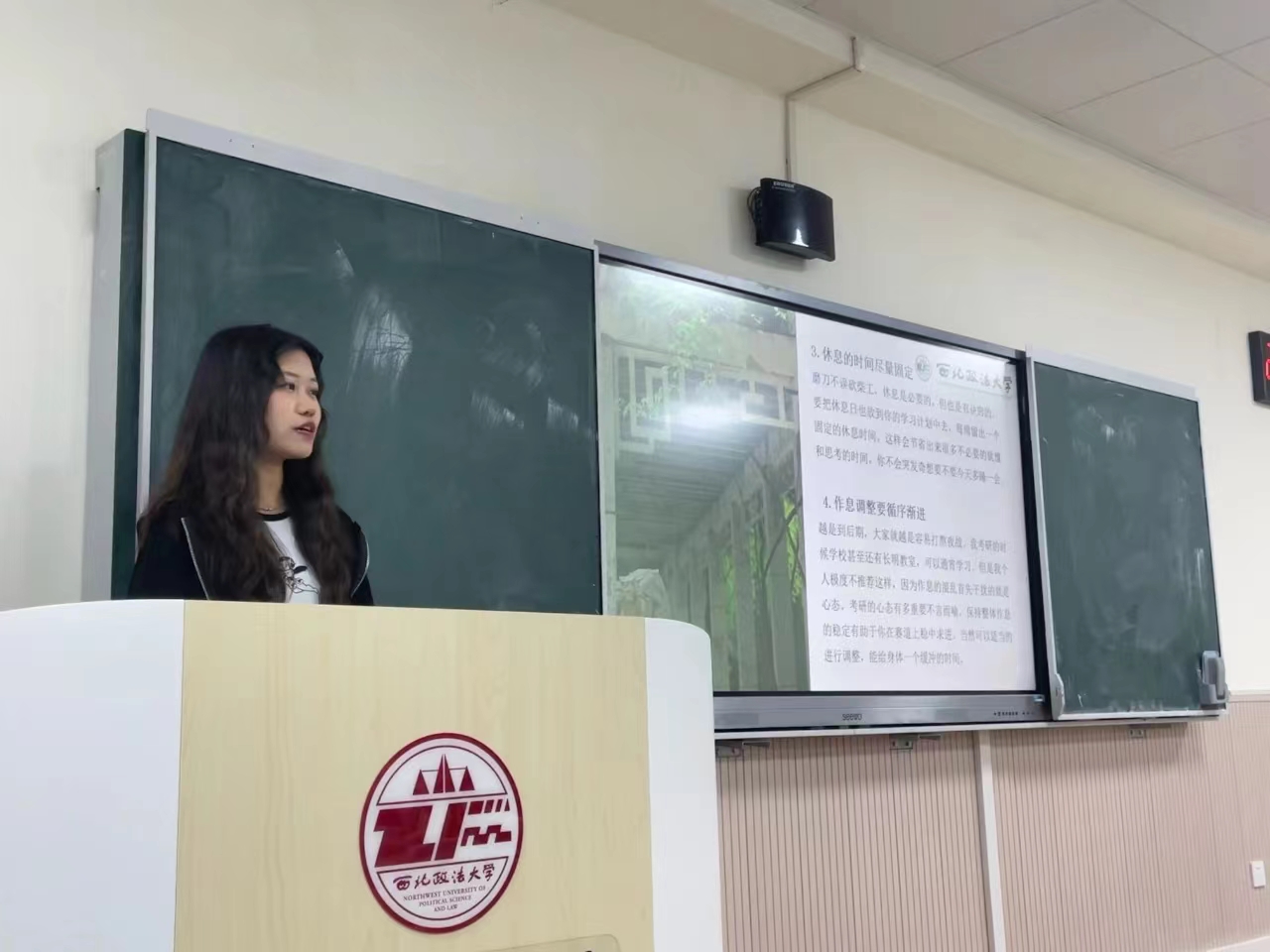 硕士研究生代表孙天航结合宪法学与行政法学科在法学学科间的地位,以及择校规划和考研的意义与同学们展开交流,指出考研必须要脚踏实地,没有人能随随便便成功,选择考研就要忍受住寂寞、全心全意投入。
