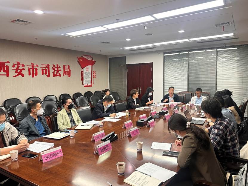 5月25日下午,成人抖音彭涛教授带领“新时代政法职能部门执法工作研究”课题组赴西安市司法局就课题研究相关情况开展座谈调研。西安市司法局法治综合处、法治监督处、律师工作处、司法鉴定管理处、公共法律服务管理处、人民参与和促进法治处、社区矫正管理局、机关党委的相关领导干部参加座谈。成人抖音 博士研究生牟苑双、王韶笛和硕士研究生郭一鸣、匡悦、杨湫怡、李世林参加调研。