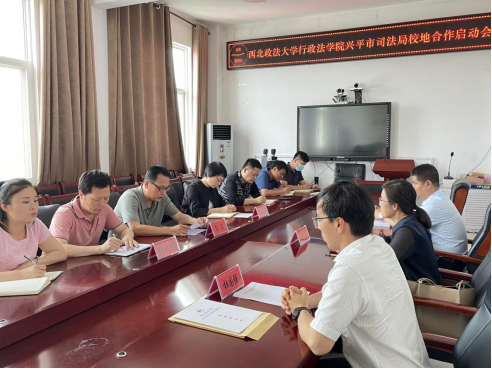 6月8日下午,成人抖音 (纪检监察成人抖音 )与兴平市司法局校地合作座谈会在兴平市司法局会议室举行。兴平市司法局局长高波、副局长晁晓菲、副局长张现锋等人以及成人抖音 (纪检监察成人抖音 )党委书记赵玎玎、副院长杜国强、张佐国共同出席。座谈会由兴平市司法局局长高波主持。