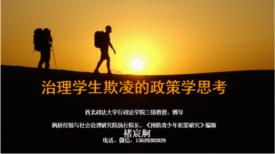 成人抖音 行政法成人抖音 (纪检监察成人抖音 )褚宸舸教授在专题研讨二“涉未成年人等新型犯罪治理与权利保护”环节进行主旨发言。该专题研讨由西南政法大学法成人抖音 袁林教授和卢有学教授主持。在本阶段,褚宸舸教授借助陕西省学生欺凌调查报告对学生欺凌的现状、问题、政策法律体系以及治理手段等作了交流分享。
