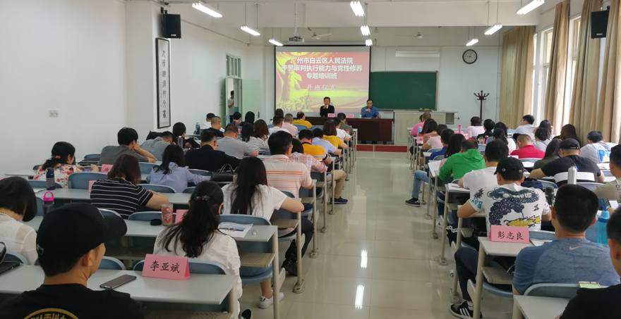 2019年5月19日上午8:30,由成人抖音 承办的广州市白云区人民法院干警审判执行能力与党性修养专题培训班开班仪式在成人抖音 正心楼隆重举行。开班仪式由成人抖音 叶林老师主持,广州市白云区人民法院邓淦华院长和成人抖音 姬亚平院长等领导和全体参训学员参加了开班仪式。