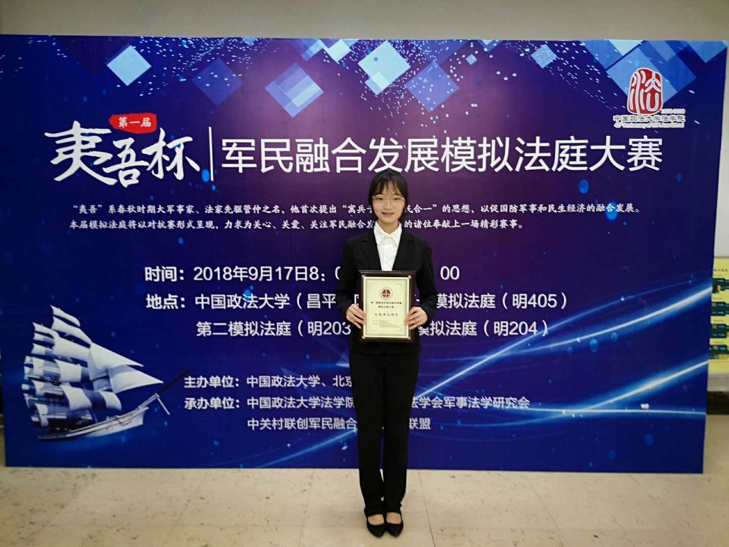 9月17、18日,第一届夷吾杯军民融合发展模拟法庭大赛在中国政法大学昌平校区成功举行。本次大赛由中国政法大学和北京市法学会主办,中国政法大学法成人抖音