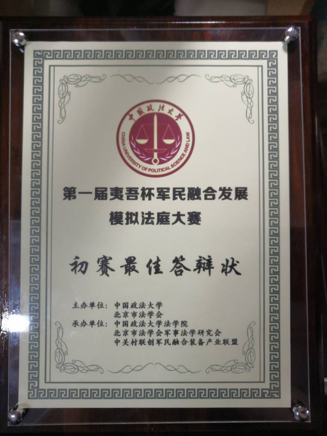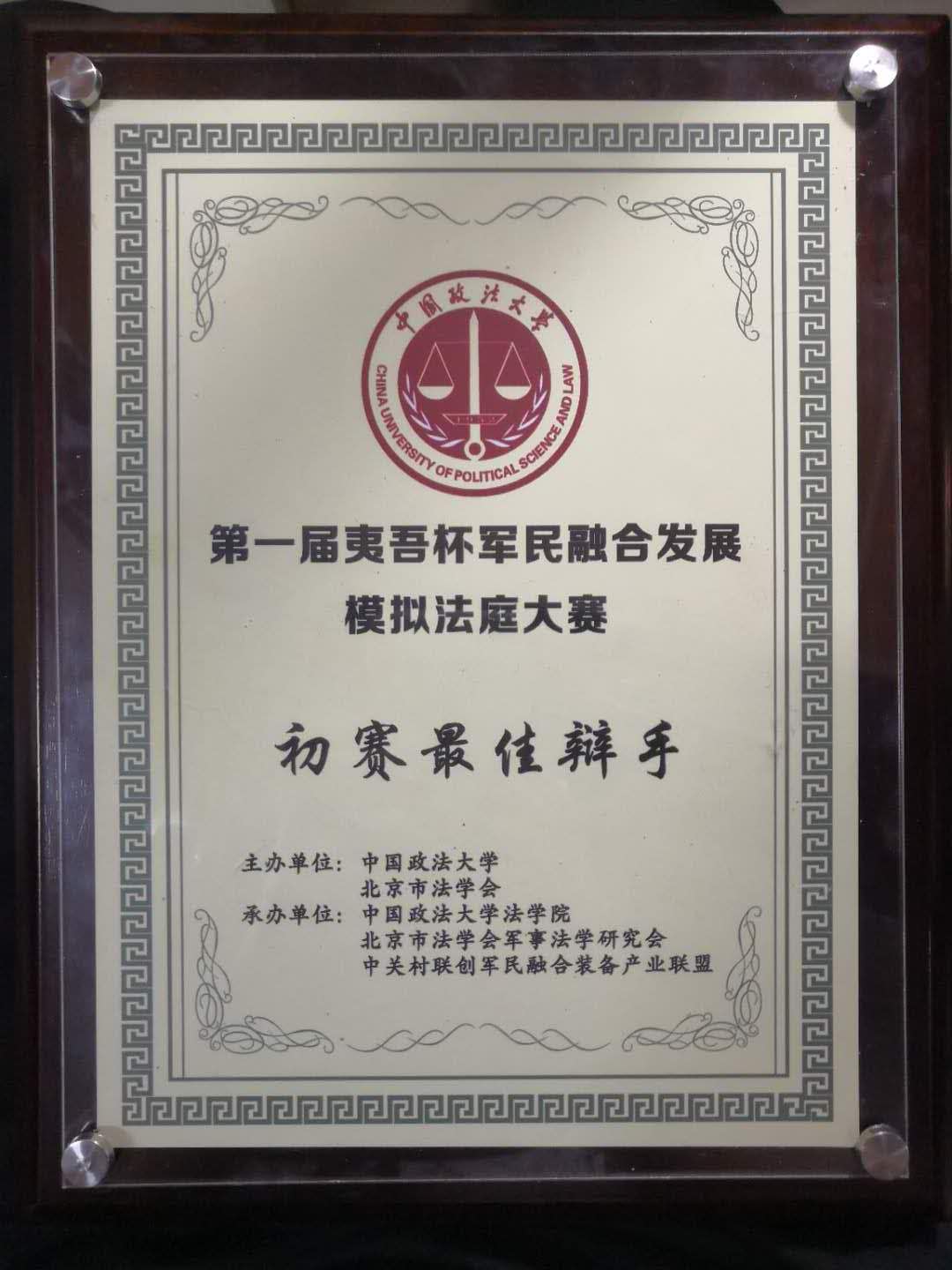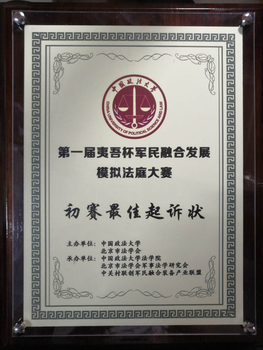 同时,我校还取得初赛最佳起诉状、初赛最佳答辩状两项奖项,队长赵涵同学被评为初赛最佳辩手。