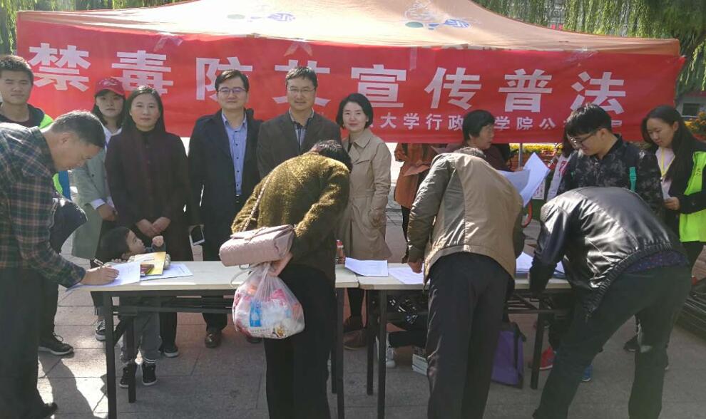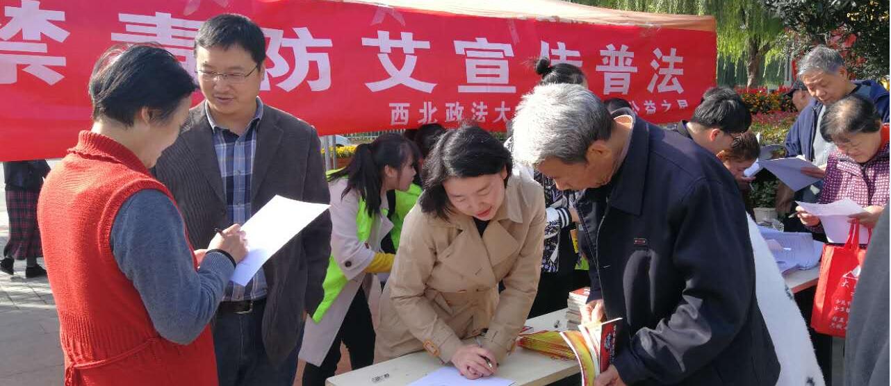 2017年11月7日上午9:00,由成人抖音 主办,“公益之星”社团携手行政法诊所承办,以“禁毒尚法,守护青春之花’为主题的禁毒防艾普法宣传教育活动,在长安广场举行。成人抖音 宪法教研室主任钱锦宇老师、行政诉讼法教研室主任彭涛老师、行政法教研室张艳老师,成人抖音 党委副书记李芳老师,以及学生30多人共同组织、开展了宣传活动。