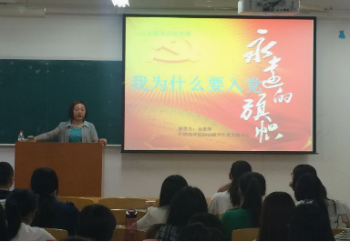 党委安排2013级学生党支部书记金惠萍同志讲党课,党课以“我为什么要入党”为主题展开。