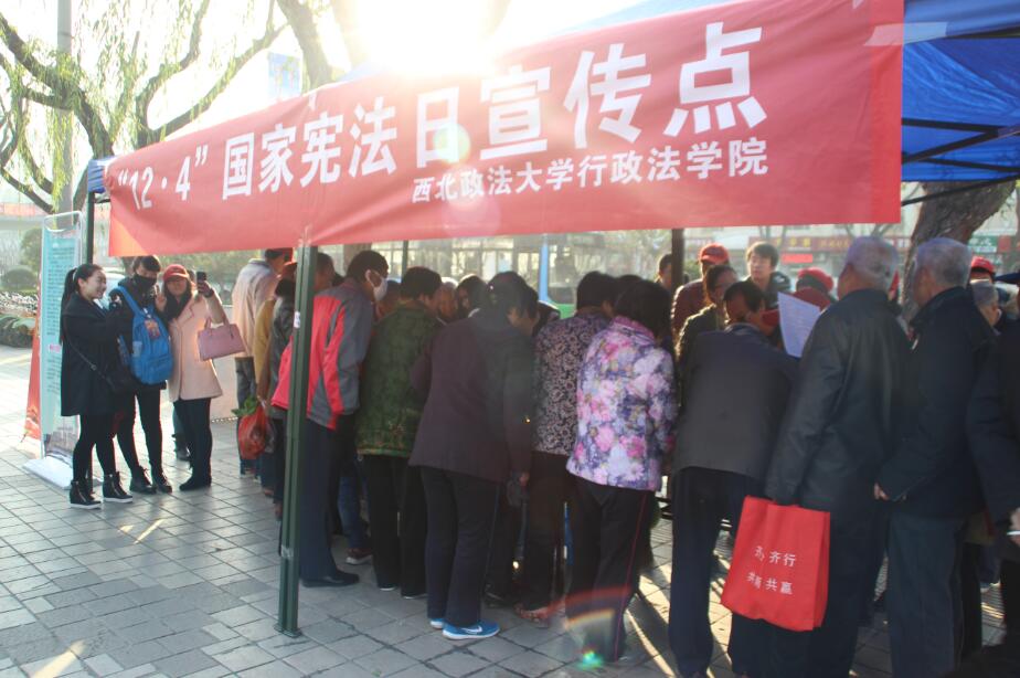 师生从学校出发前往宣传地点。上午9时,宣传活动正式开始。本次宣传活动内容主要是向市民大力宣传依法治国的大背景下“国家宪法日”的相关知识,通过发放宣传材料,填写问卷调查,号召市民在“弘扬宪法精神,建设法治国家”的横幅上签字留念,为市民的法律纠纷、案件提供咨询与服务,答疑解惑等多种生动的形式进行宣传。