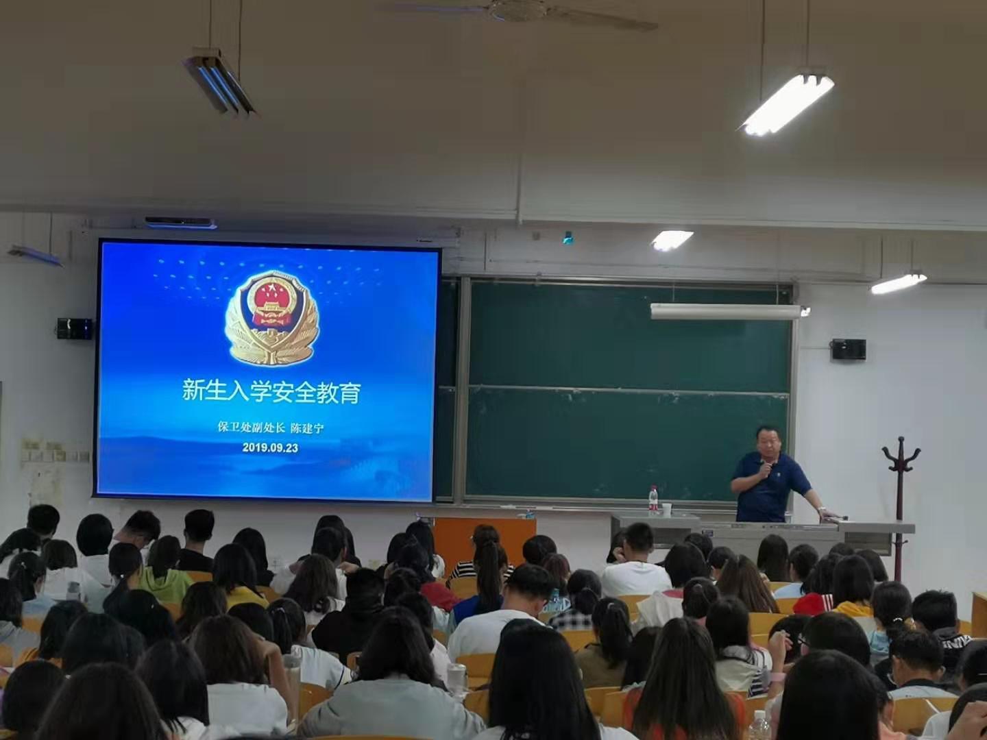 为加强2019级新生安全知识教育,成人抖音 于9月23日19时30分在天平楼AJ23召开了新生入学系列讲座之安全教育。本次讲座主讲人由校保卫处副处长陈建宁老师担任。