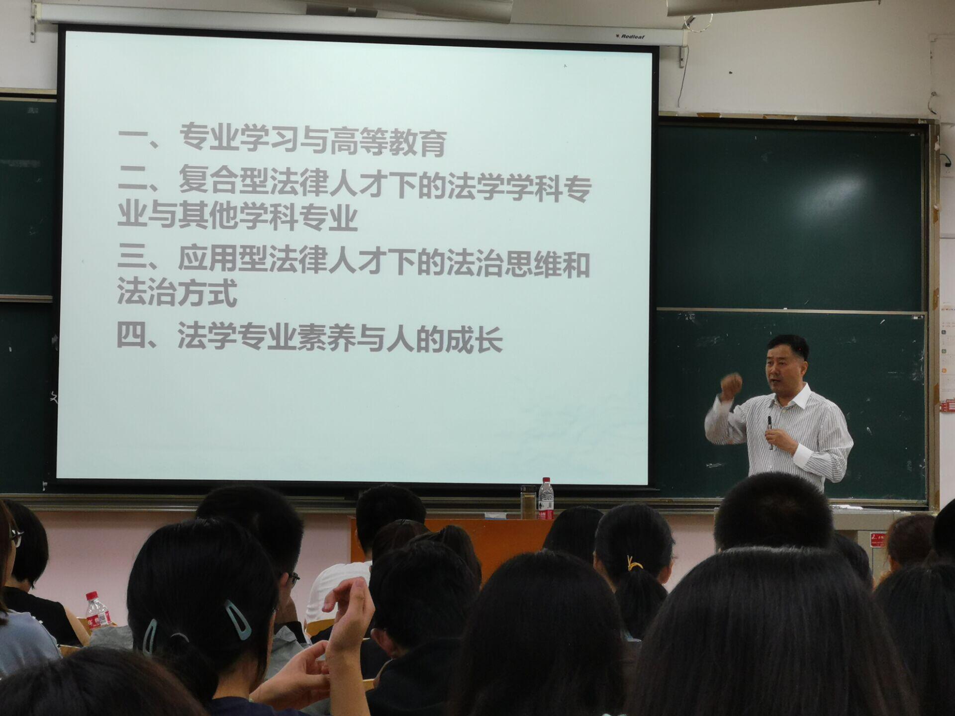 王周户教授首先细致地向同学们阐释了专业学习与高等教育的内涵和关系。他认为,同学们高考后通过选择专业进入高等教育,没有不通过专业教育而学成的才能,但只学习专业而忽视其他教育或专业教育塑造人的哲理只会成为专业方面的工具。他希望同学们能够珍惜大学生活的自由时间,打好基本功,掌握分析新事物的能力。 就成人抖音 法律人才培养的专业性,王周户教授也提出了自己的见解。对于复合型法律人才下的法学学科专业与其他学科专业的问题,他强调复合型法律人才必须在精通专业知识的同时了解更多其他知识,考虑国家传统等问题,才能更好地在社会独当一面。王教授旁征博引,以诸多事例告诉同学们,要用长时间的积淀形成应用型法律人才下的法治思维和法治方式,尊重法律知识结构,不断参与实践。