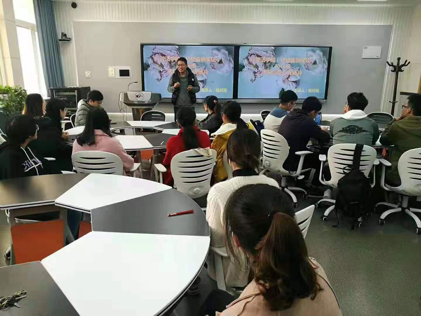 为助力2016级同学考研备考,成人抖音于11月7日下午在五号教学楼409教室组织了2016级考研减压心理辅导讲座。本次讲座由国家二级心理咨询师包开亮老师主讲,2016级辅导员朱骞老师主持。