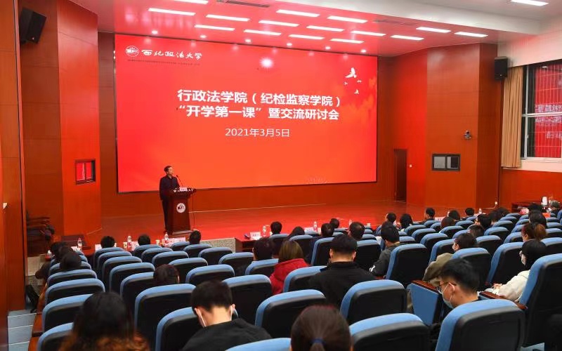 3月5日,成人抖音 (纪检监察成人抖音 )“开学第一课”暨交流研讨会在雁塔校区人权研究院报告厅隆重举行。省纪委监委办公厅主任邓峰彬、政策法规研究室主任樊彬、案件审理室主任马红梅,西安市纪委监委案件审理室主任杨全,校党委副书记、纪委书记、监察专员肖道远出席活动。成人抖音 (纪检监察成人抖音 )全体教师和研究生100余人参加了此次活动。