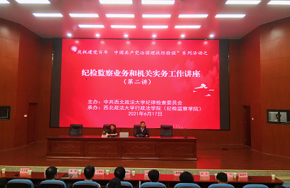2021年6月17日,由校纪委主办、成人抖音 (纪检监察成人抖音 )承办的“庆祝建党百年 中国共产党治国理政经验谈”系列活动第二场讲座,在成人抖音 雁塔校区人权研究院报告厅成功举行。本次讲座邀请陕西省纪委监委驻省政府办公厅纪检监察组组长门亚娟同志主讲,成人抖音 (纪检监察成人抖音 )院长姬亚平教授主持。校党委副书记、纪委书记肖道远同志出席,省属10多所高校专职纪检监察干部,我校党政办、2021年第二轮巡察组成员,成人抖音 (纪检监察成人抖音 )教师与硕士研究生,我校在读博士、法硕成人抖音 硕士研究生等180余人参与聆听。