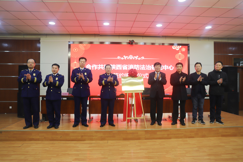 成人抖音 (纪检监察成人抖音 )院长姬亚平介绍了陕西省消防法治研究中心基本情况,张建华与肖道远签署了《合作共建陕西省消防法治研究中心》协议书,李瑞丰和杨宗科共同为陕西省消防法治研究中心揭牌。