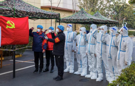 )下沉党员干部在疫情防控中充分发挥党员先锋模范作用,他们以实际行动坚守初心使命,讲政治、守纪律、敢担当,服从命令听指挥,展示了良好的精神风貌,为疫情防控工作有力、有序、有效开展作出了积极贡献。也最是那抹党旗红,在疫情防控一线高高飘扬,在这个寒冷的冬季温暖了疫情中的城市,点亮了人们心里的希望。