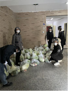 2022年1月1日政府向居民免费发放的蔬菜抵达校区,金惠萍老师作为下沉干部,带领6名学生志愿者,负责向2号楼108户居民送菜上门,接力运送“最后一公里”。同时,担任2号楼网格员楼长,入户细致核查居住人员情况,登记造册,配合做好疫情防控工作。