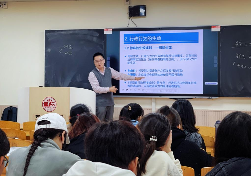 钱卿老师以“行政行为的效力”为主题,结合具体案例和生活事例讲解了行政行为的效力变动及其对行政机关依法行政、保护相对人合法权益的重要意义。通过互动答疑、学生研讨等方式为学生们生动地展示了行政行为从成立到失效的条件与法律后果,重点区分了行政行为“撤销”和“废止”等行为效力之间的关系,引导学生自主思考,从案例引申出对概念的理解和对法条的应用,增强学生对于法治政府建设中严格规范公正文明执法的认识,帮助学生树立正确的法治观和价值观。钱老师教学过程条理清晰,重点突出,对相近概念进行比较分析,创造具体情景促使学生深入理解规范价值,实现了知识传授与价值引领相统一、教书与育人相统一。