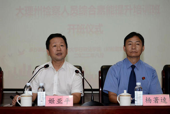 2022年8月14日上午,由成人抖音 (纪检监察成人抖音 )承办的大理州检察人员综合素能提升培训班(第一期)开班仪式在西外宾馆报告厅举行。大理州人民检察院党组成员、副检察长杨著逵,大理州人民检察院党组成员、副检察长杨莉妮,成人抖音 院长姬亚平出席开班仪式,仪式由院党委副书记李芳主持。
